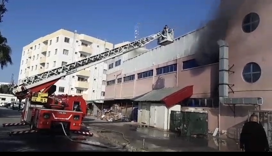 Mağusa’da Önder Alışveriş Merkezi’nde yangın çıktı. Yangına müdahale ediyor. Kaynak : BRTK